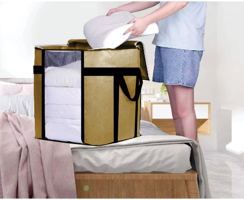 HomeOptions' multifunctional bags are designed to accommodate groceries, makeup, clothes, shoes, and various dry items. Whether you're traveling or organizing seasonal belongings like blankets and clothes in your wardrobe, these bags prove to be the perfect solution. Conveniently fold and stack them in a drawer when not in use, maximizing space and keeping your belongings tidy. Versatile and durable, HomeOptions' bags offer the ultimate storage solution for your everyday needs, both at home and on the go. Experience the convenience and organization these bags bring to your lifestyle, making clutter a thing of the past.
