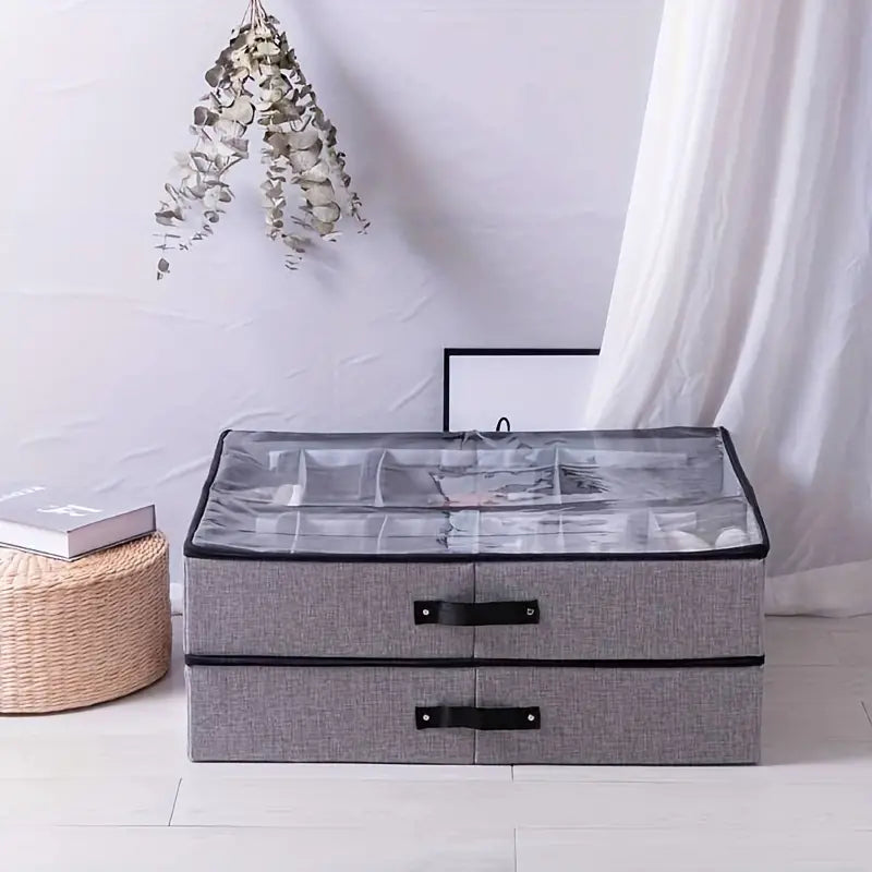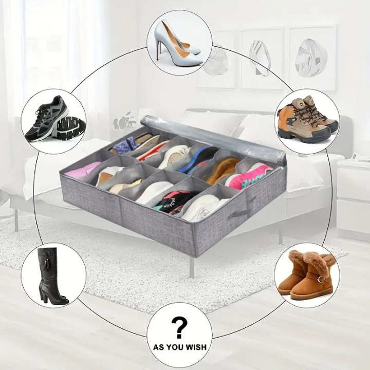 Dust - Proof 12 Grids Shoe Storage Bags / Non Woven Transparent Shoes Cabinet