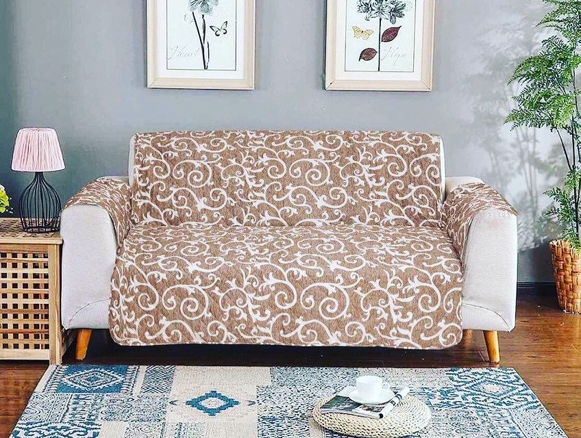 Printed Quilted Sofa Runner - Sofa Coat ( Copper )