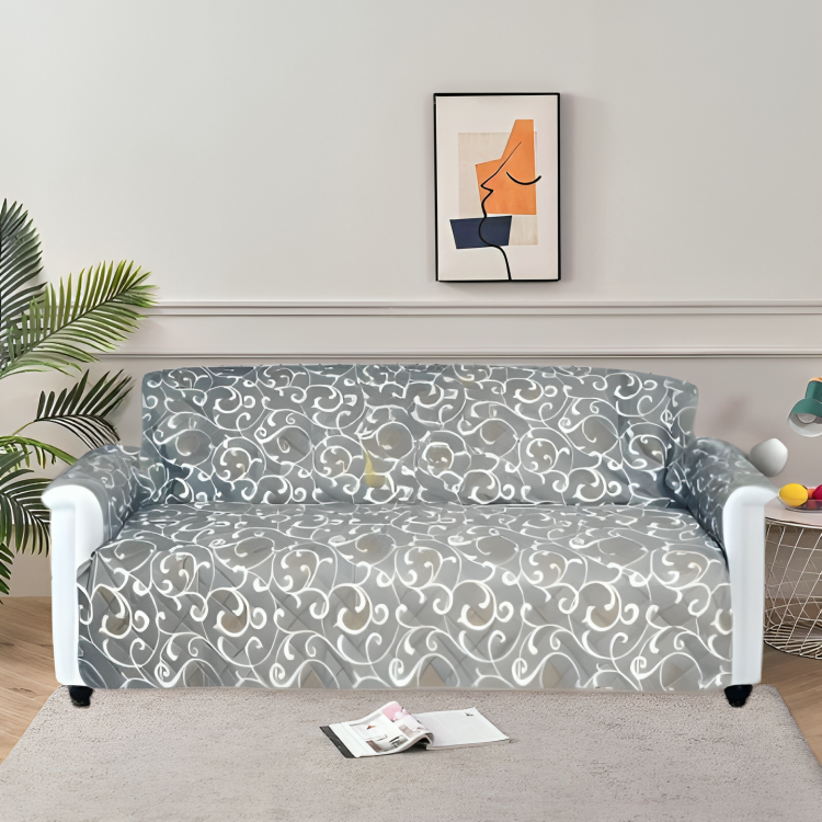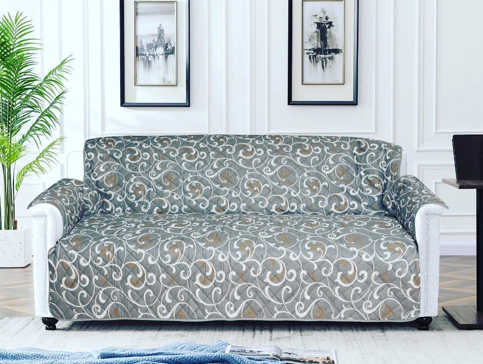 Printed Quilted Sofa Runner - Sofa Coat ( Grey )