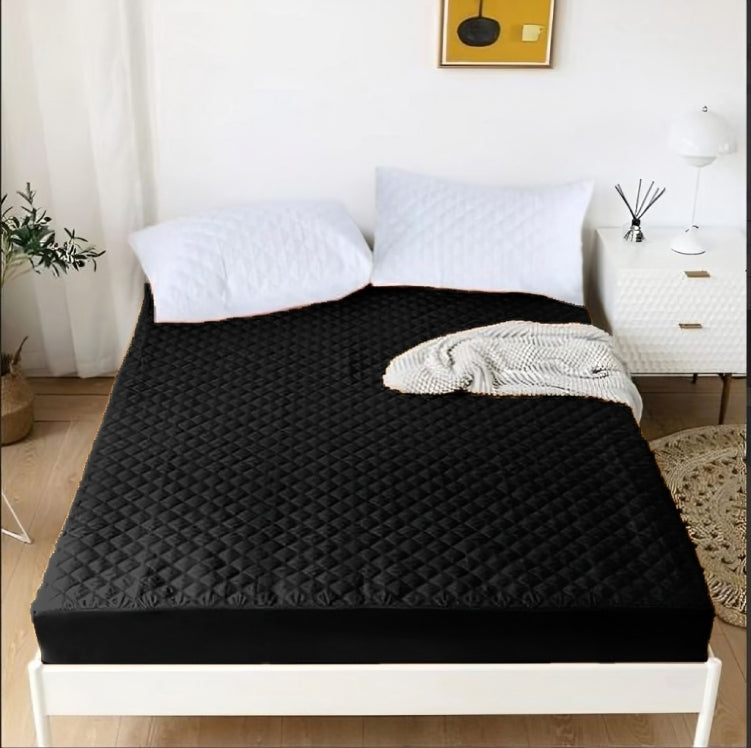 Quilted Cotton Waterproof Mattress Protector - Black
