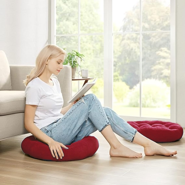 Velvet Round Floor Cushions With Ball Fiber Filling ( 1 Pair = 2 Pcs ) - Maroon