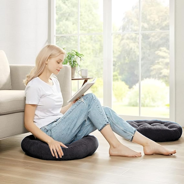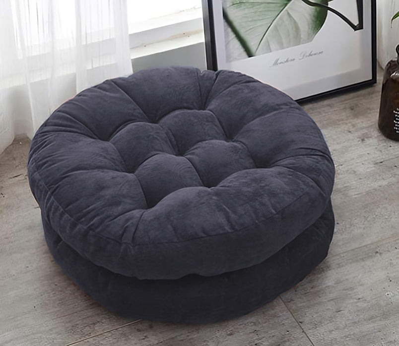 Velvet Round Floor Cushions With Ball Fiber Filling ( 1 Pair = 2 Pcs ) - Black