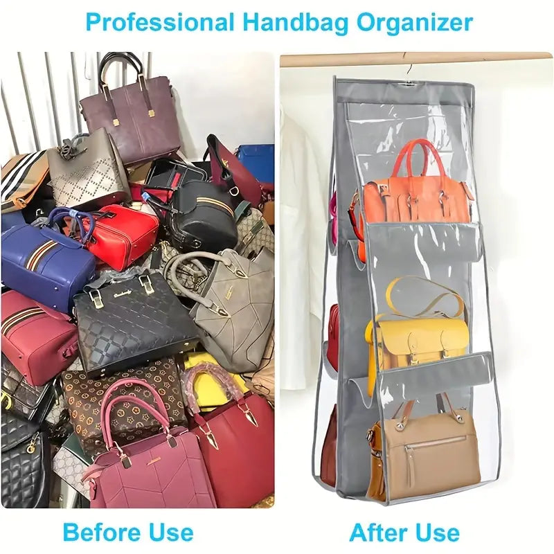 Six Pockets Hand Bags Organizer / Dust - Proof Space Saving Holder With Hanging Hook