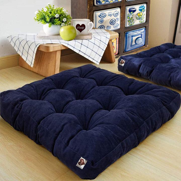 Velvet Square Floor Cushions With Ball Fiber Filling ( 1 Pair = 2 Pieces ) - Blue