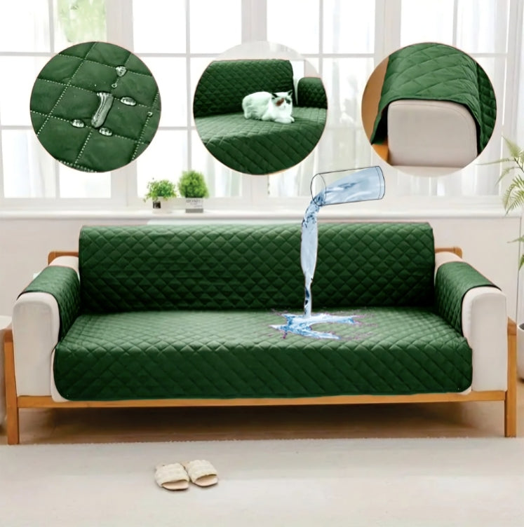 Waterproof Cotton Quilted Sofa Cover - Sofa Runners (Green)